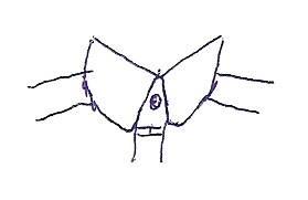 Den Tab-Kragen der gerade geschnitten ist und dessen Flügel unterhalb verbunden werden.